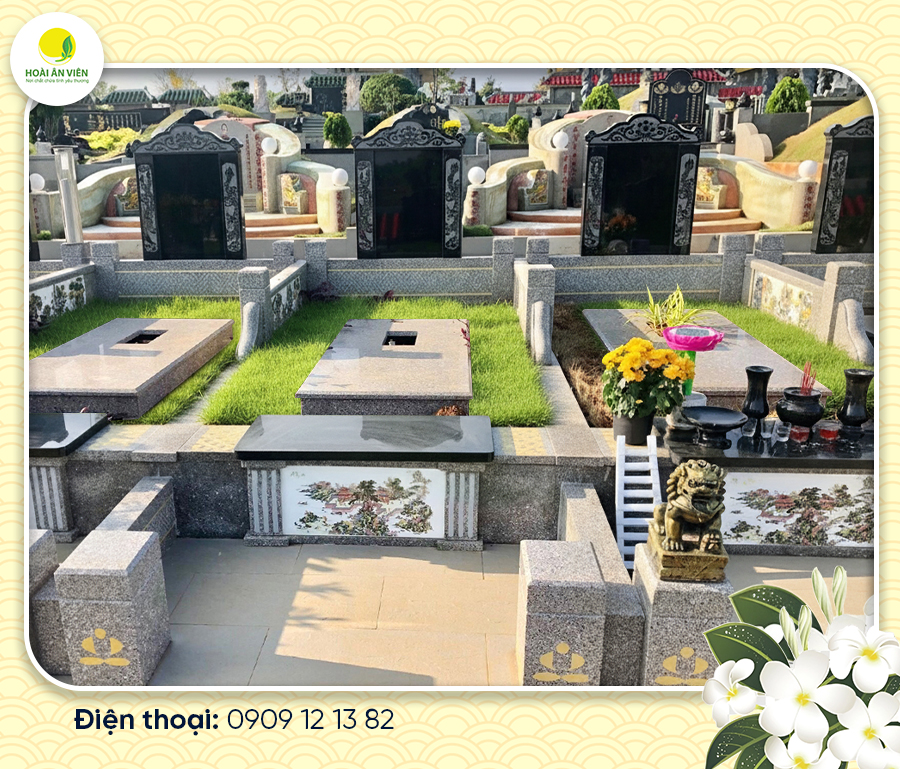 ✅ Hai bên mộ là hàng rào nhỏ có những hình trạm trổ điêu khắc, giúp ngôi mộ trở nên đẹp và nổi bật hơn, ngoài ra bên cạnh hàng rào còn có những hàng hoa nhỏ trồng xen kẽ, giúp tăng tính thẩm mĩ cho ngôi mộ.